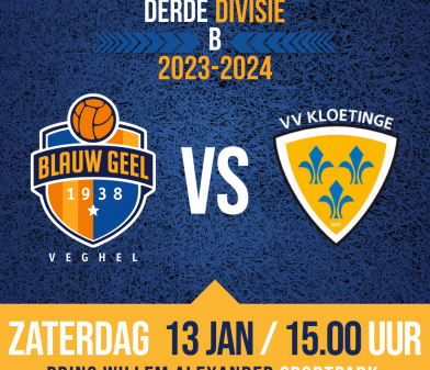 DRAMATISCH OPTREDEN IN EIGEN HUIS vv Blauw Geel’ 38/Jumbo — vv Kloetinge (0-1) 0-2. Zaterdag 13 januari en op een voor Blauw Geel erg ongebruikelijk aanvangstijdstip van 15.00 uur...