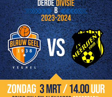 A.s. Zondag Blauw Geel’38/JUMBO – sv Meerssen om 14:00 uur