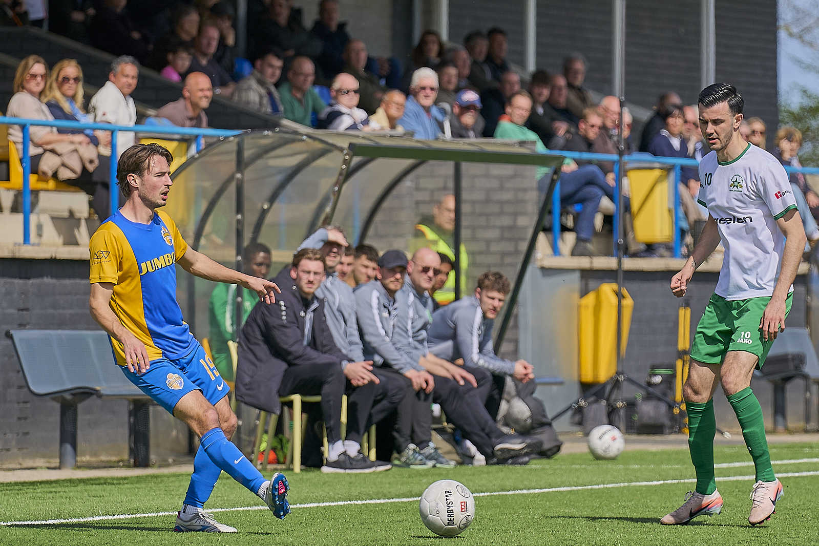 Paasmaandag, 6 april. Blauw Geel speelt op het eigen Prins Willem Alexander Sportpark het eerder in januari afgelaste duel tegen Groene Ster uit Heerlerheide. De gasten bevinden zich in de gevarenzone met een veertiende plaats op de ranglijst, slechts 1 punt boven UNA dat op een nacompetitieplaats staat voor klasse behoud. De sterdragers verloren afgelopen weekend met 3-2 in Vlaardingen van vv Zwaluwen. Verder kunnen zij deze jaargang nog geen winst optekenen. Op 25 januari j.l. werd er een puntje gepakt in Uden bij UDI’19 (2-2) verder dus louter nederlagen, vier stuks in totaal. De laatste winst buitenshuis dateert van 15 november toen er in Noordwijk met 1-3 werd gewonnen. Blauw Geel kent een prestatie curve enigszins vergelijkbaar met Groene Ster alleen dan in de thuiswedstrijden. Vorig weekend werd verloren in Noordwijkerhout van VVSB met 3-1 maar deze jaargang werd alleen thuis gewonnen van SteDoCo (1-0) en dat is iets wat de trouwe aanhang niet prettig vind. Eerder dit, bij de opening van de competitie, was Blauw Geel met 0-1 de sterkste geweest in Heerlerheide. Vandaag moet Groene Ster winnen om een marge op te bouwen met plaats 15, Blauw Geel moet gaan winnen om niet in een onnodige lastige positie te komen en ook nog naar benende te moeten kijken.