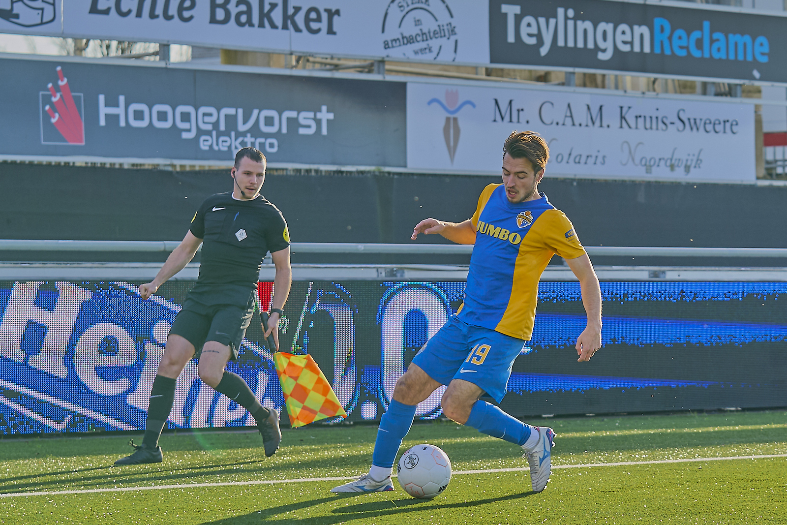 Toch viel het openingsdoelpunt voor de Noordwijkers. Maxwell Frimpong kon naar binnen dribbelen en uithalen. De bal viel achter Jordy Zielschot in het doel. Snel dus weer in de achtervolging in een uitwedstrijd. De controle van voor het doelpunt bleef maar Noordwijk hield alles goed dicht. Blauw Geel was te onmachtig om er door te breken.