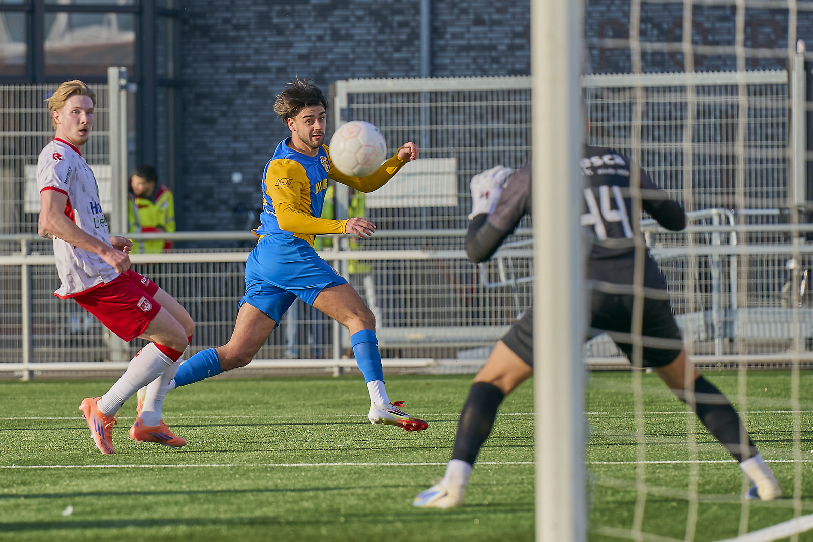 Eerste kans van de wedstrijd was voor de Veghelaren. Sol van de Ven kreeg de bal voor z’n voeten en kon uithalen. Schot was echter niet goed genoeg. Wat later stak Koen van der Zanden Dave de Meij goed diep weg maar het schot van de spits was niet hard genoeg. Blauw Geel zocht de aanval met de controle. Hetzelfde Blauw Geel als wat we begin van de competitie zagen.