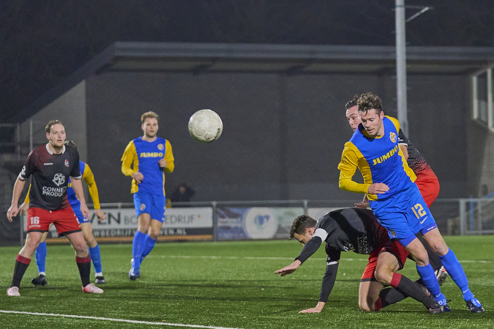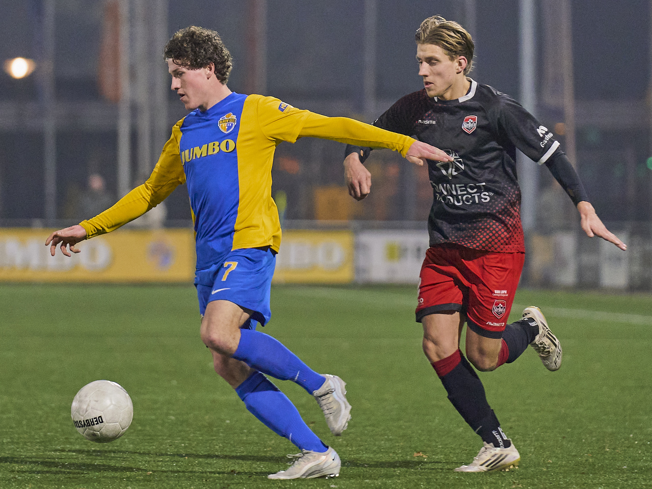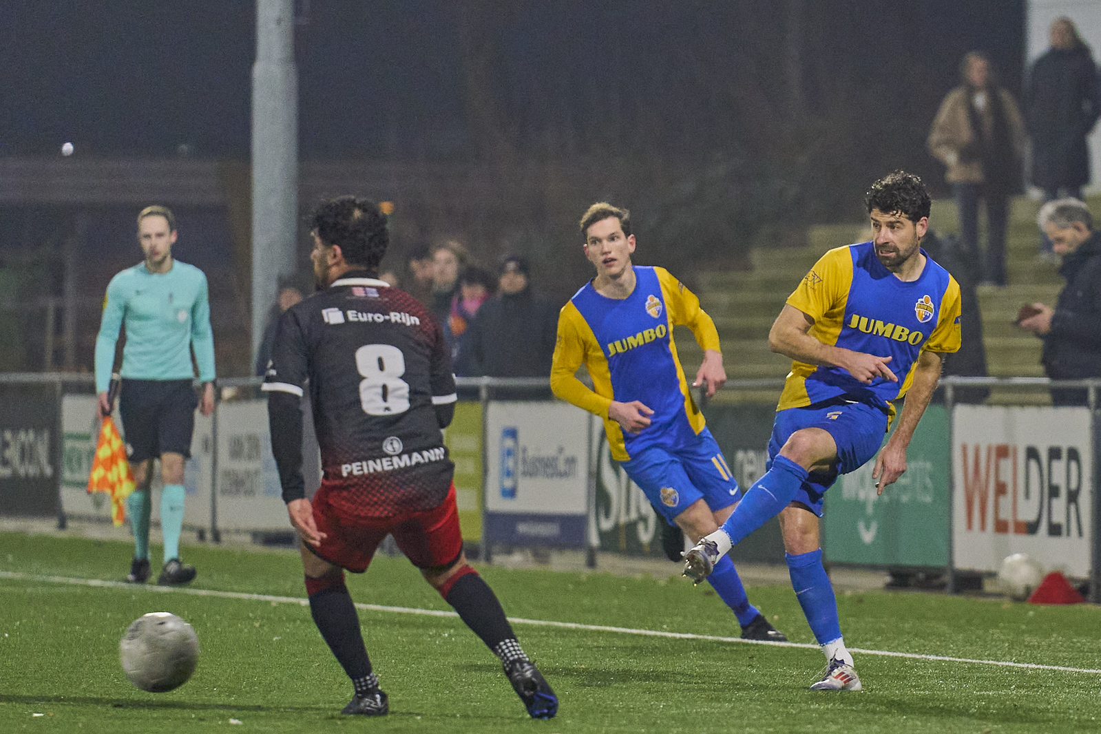 Blauw Geel was overigens ook op zoek naar de goal. Ben van den Nieuwenhof kreeg de bal aangespeeld en met een schitterende beweging passeerde hij z’n tegenstander. Helaas ging het schot naast. Iets later de grootste kans voor SteDoCo. Sjaak Kuyper kon van afstand uithalen en via een Blauw Geel been werd deze van richting veranderd. Even leek deze in de goal van Jordy Zielschot te vallen, maar de bal raakte de lat.