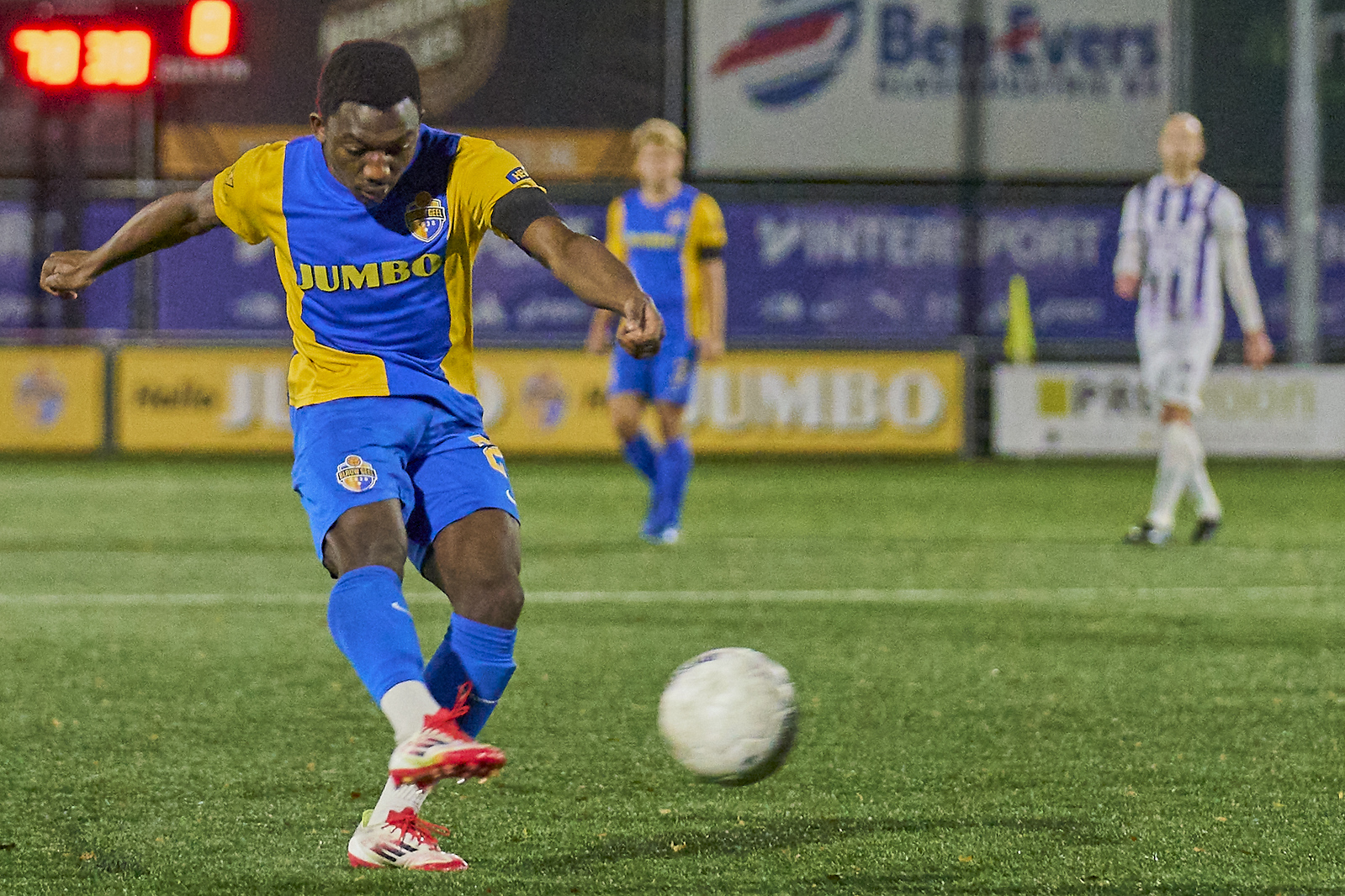 Van Rosmalen die de bal aan de zijlijn goed binnen houd en meegeeft aan Koen van der Zanden. Die zet weer en deze voorzet is weer niet echt verkeerd en wederom kan Yasin Magazi de bal niet verwerken. Het blijft na een ruime blessuretijd van zeven minuten bij 2-0.