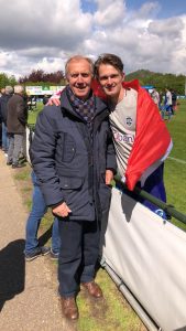 -Willy van der Kuijlen aan de rand van het veld met kleinzoon Mitch van Rosmalen (Foto privé familie van Rosmalen)
